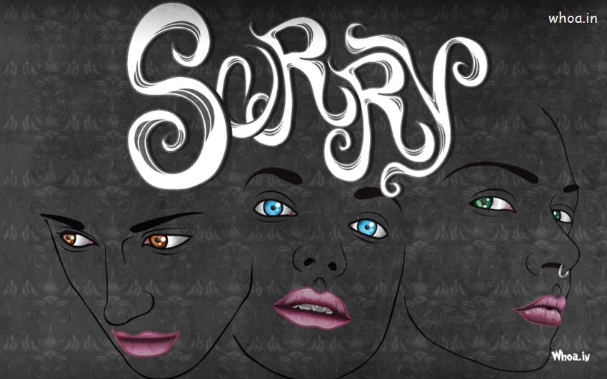 3 Face and Sorry with Dark Background HD Wiescreen Wallpaper, Sad Wallpaper, Sorry Wallpaper, I am Sorry Wallpaper