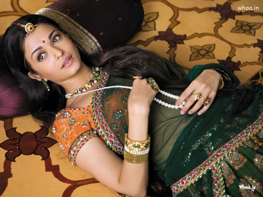 Aishvariya Rai In Green Saree Jodha Akbar Movie Wallpaper