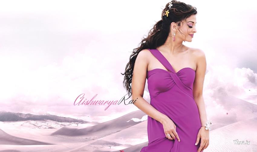 Aishwarya Rai Beautiful Purple Dress Smily Hd Wallpaper