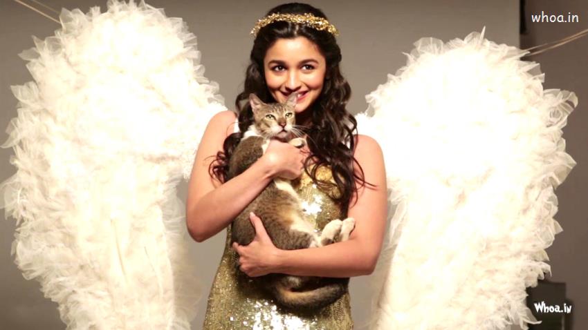 Alia Bhatt White Angel Dress with cat HD Wallpaper,Bollywood Actress Wallpaper,Bollywood Celebrity Wallpaper,Alia Bhatt Wallpaper