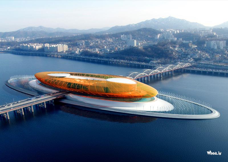 Arts Center in Seoul-South Korea. It is called The Eye of the Storm and an island in the middle of the Hangang River Wallpaper