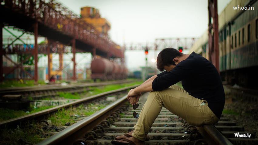 Best Sad Looking Man Is Sitting Alone On Railway Track HD Depression Images, Photos Free Download - Wallpapers tagged with DEPRESSION