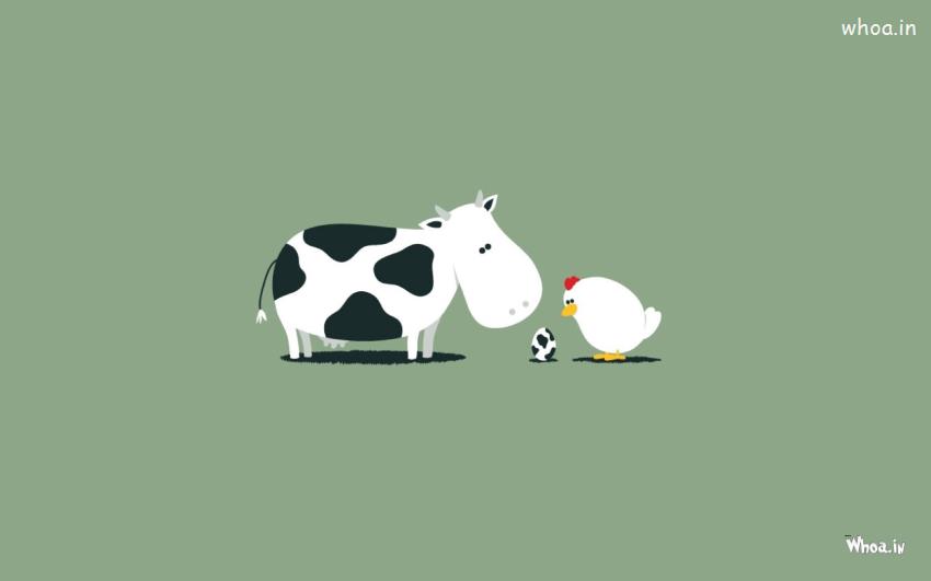 Black and White Cow and White Chicken Egg Full Funny Wallpaper,Animal Fun HD Wallpaper,Facebook Fun Wallpaper,Funny Wallpaper,Cartoon Fun Images