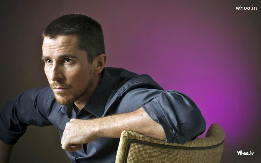 Christian Bale Face Closeup with Purple Background Photoshoot Widescreen Wallpaper, Hollywood Actor Images, Christian Bale Images