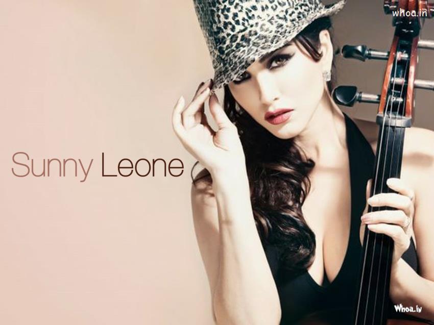 Hot Close up Sunny Leone with guitar in Balck Dresh Free HD Wallpaper