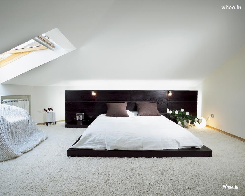 Comfortable and Soft White and Dark Bedroom Room Interior Design Wallpaper