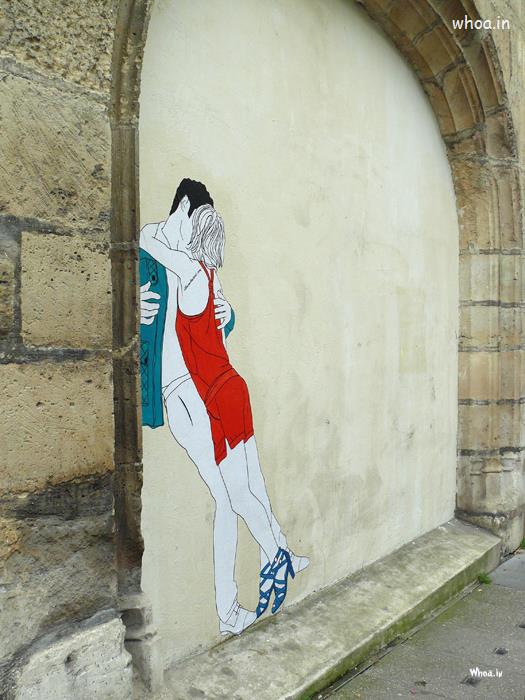 Couple Kiss 3D Wall Art Like a Cartoon Couple HD Photo