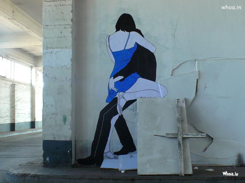 Couple Kiss 3D Wall Art In a Building Wall Best Art HD Wallpaper