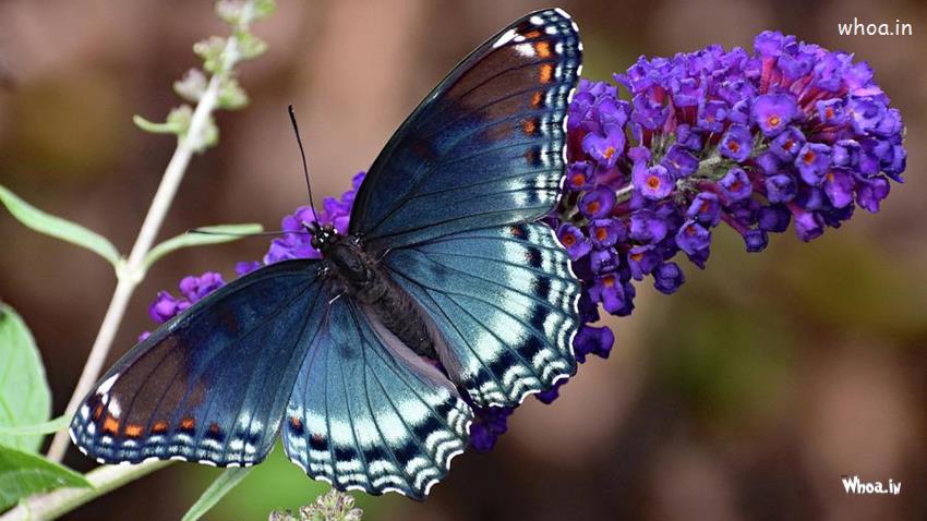 Dark Ash White Design Butterfly On Purple Flowers In Blur Background HD Butterfly Wallpaper