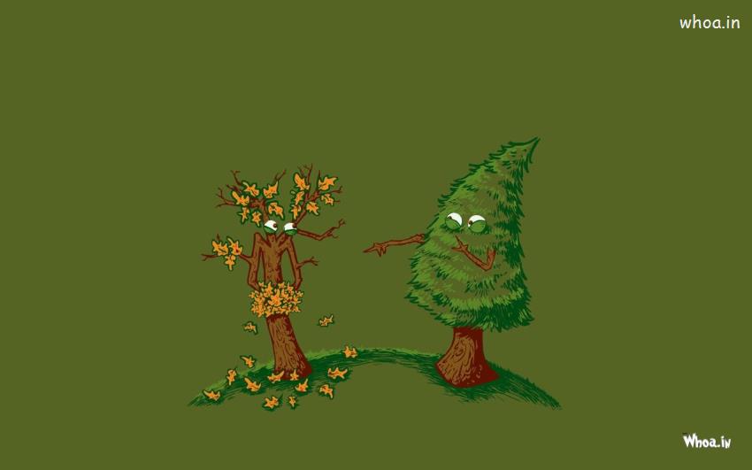 Funny Green Tree V/S Old Tree Animation Fun Wallpaper,Animation HD Wallpaper,Cartoon Funny HD Wallpaper,Funny Wallpaper,Facebook Fun Wallpaper