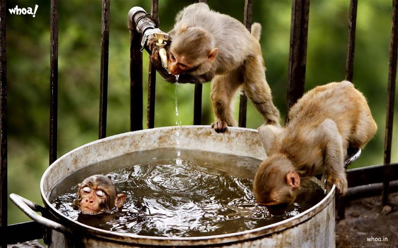 funny monky bath and drinking water wallpaper for desktop and facebook fun free download