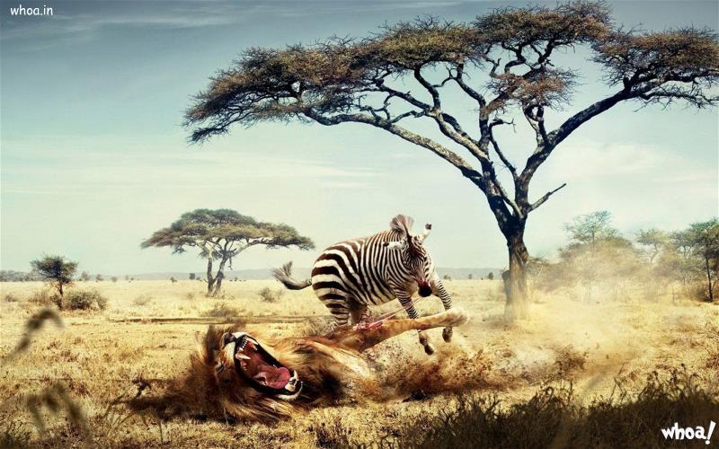 funny zebra hunting a lion wallpaper for desktop and facebook free download