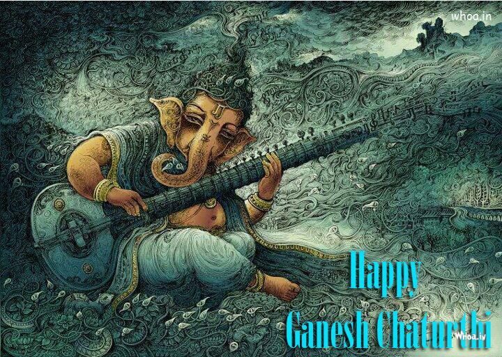 ganesh chaturthi lord ganesha with guitar , ganesh chaturthi greetings, ganesh chaturthi wishes, Ganesh Chaturthi Greetings wish