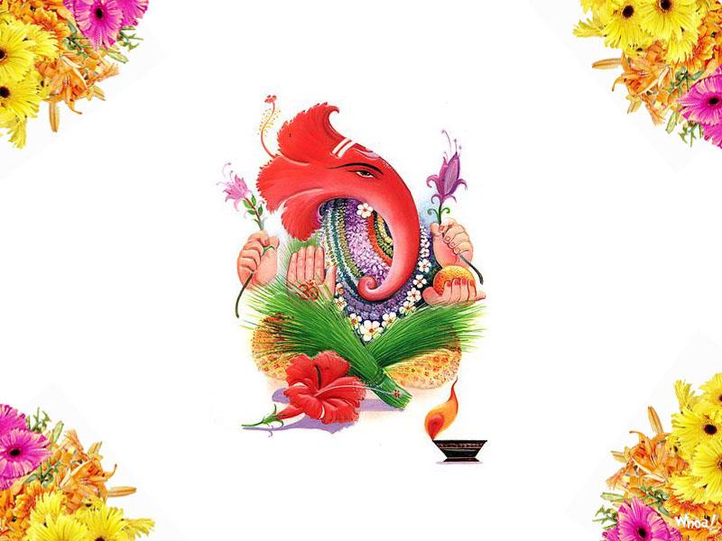 Lord Ganesha flowers Art With White Background HD Wallpapers for Desktop Background