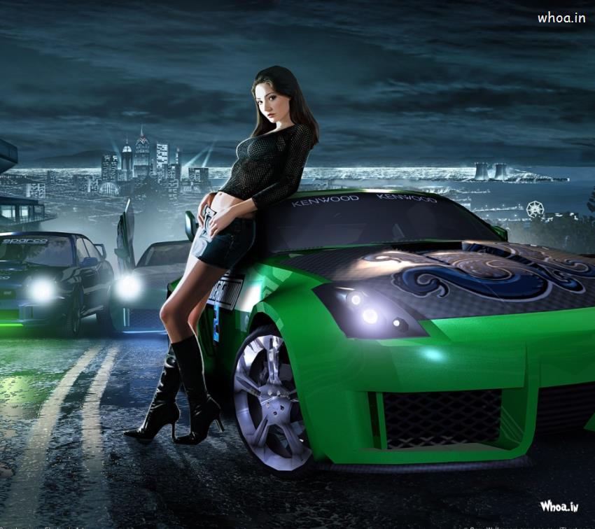 Green Spots Car with Girls HD Wallpaper,Cars HD Wallpaper and Images,Sports Car HD Wallpaper,Racing Car HD Wallpaper for Android Mobile,HD Wallpaper