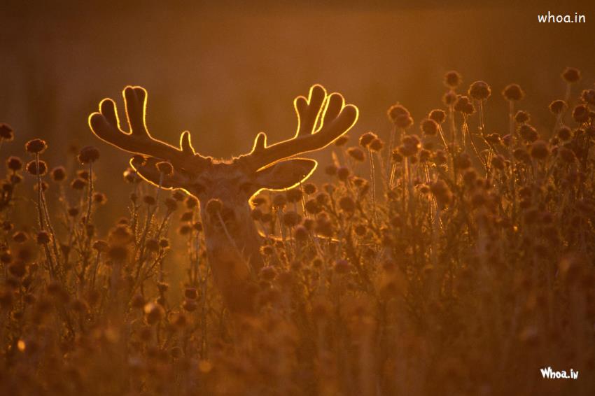 Golden Deer in the Flower Park with Golden sunset Wallpaper