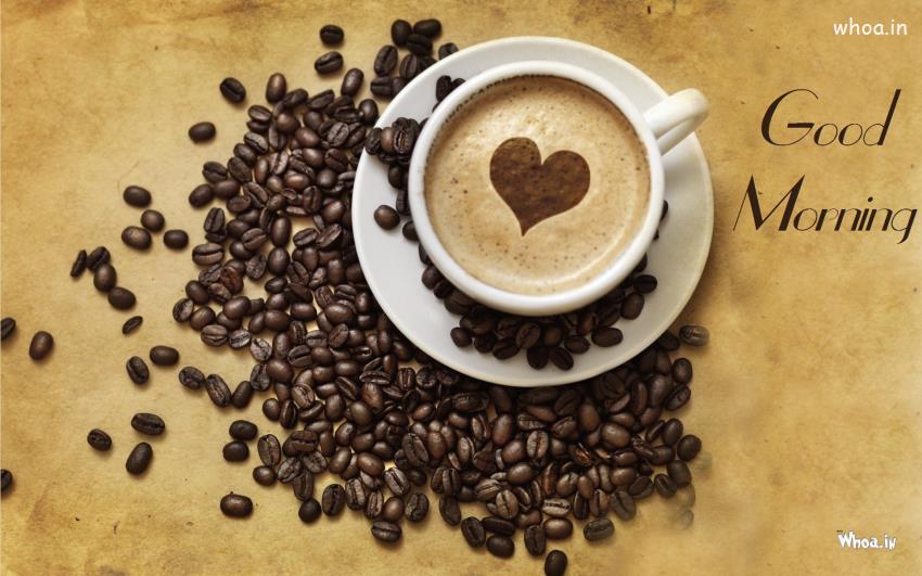 Good Morning with Cup of Dark Coffee Heart image Wallpaper