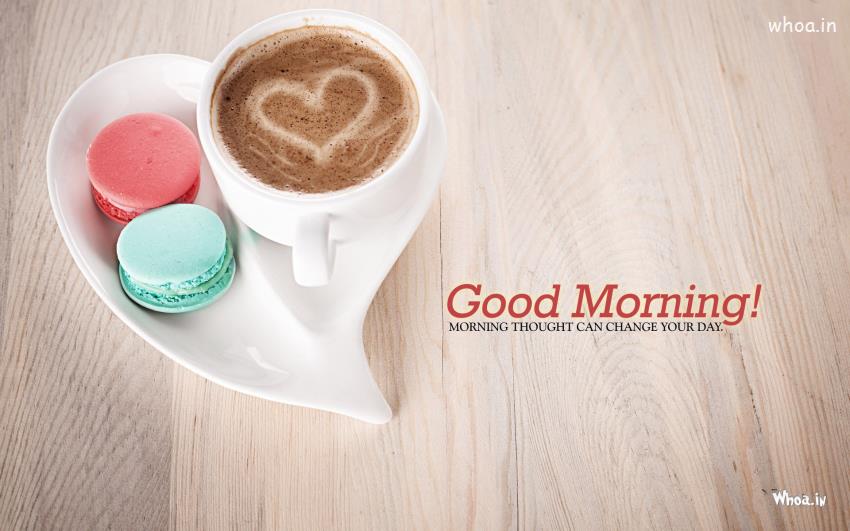 Good Morning with Cup of Dark Coffee Heart image and Morning Thought Can Change Your Day