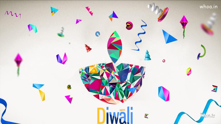 Happy Diwali With Colorful Deeepak Greeting Wallpaper