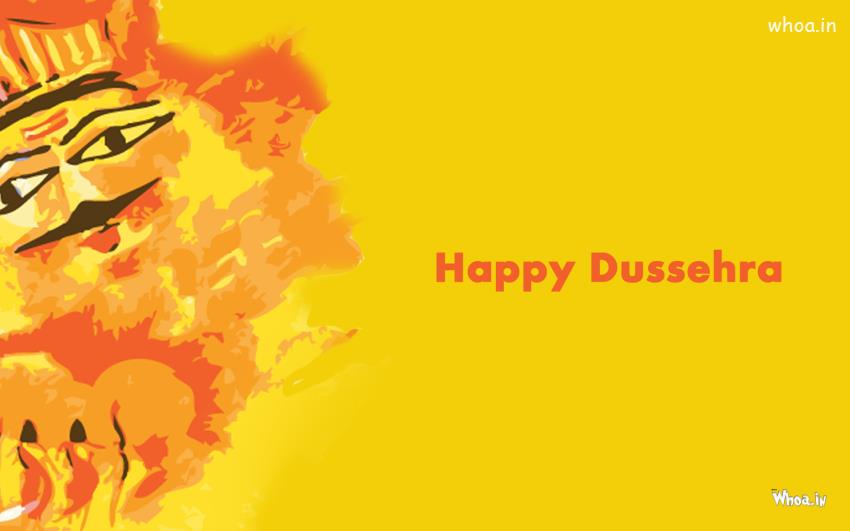 Happy Dussehra Lord Ram And Ravan With Yellow Background Wallpaper
