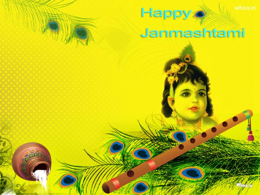 happy janmashtami yellow background,happy janmashtami,lord krishna,krishna janmashtami,janmashtami greetings HD wallpaper