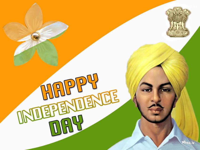 Happy Independence Day Indian Flag With Butterfly And shahid Bhagat Singh Photo