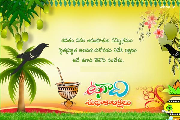 greeting image of Happy Ugadi is with delicious fruit and beautiful quote