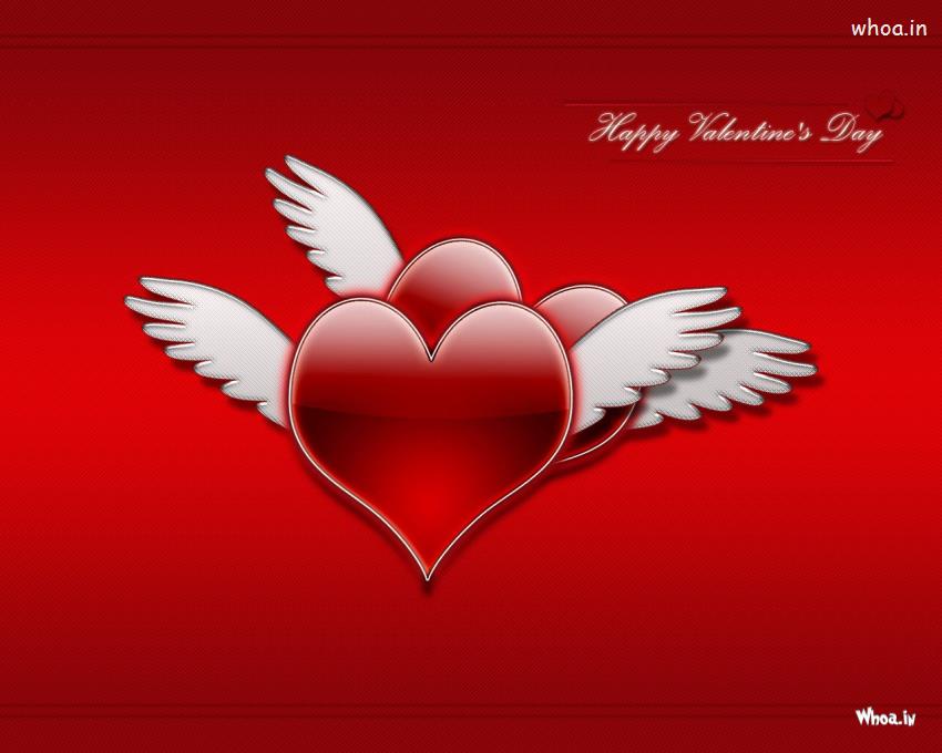 Happy Valentine Day Red Heart Like a Bird And Red Background HD Wallpapers For Desktop