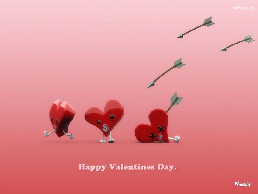 Happy Valentine Day Pink Funny Running And Broken Heart Full HD Wallpapers For Valentines Greeting