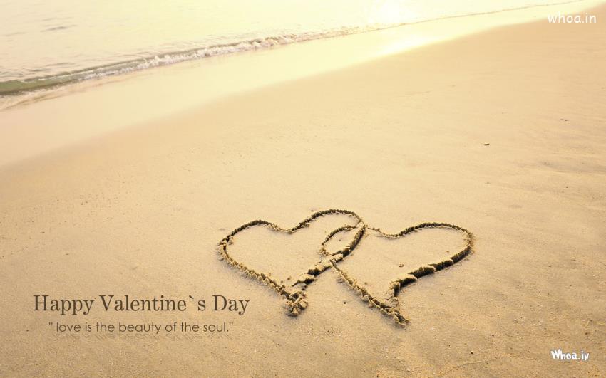 Happy Valentine Day Love Heart Art Creation On Sea Shore Hd Wallpaper For Desktop Base Wallpapers