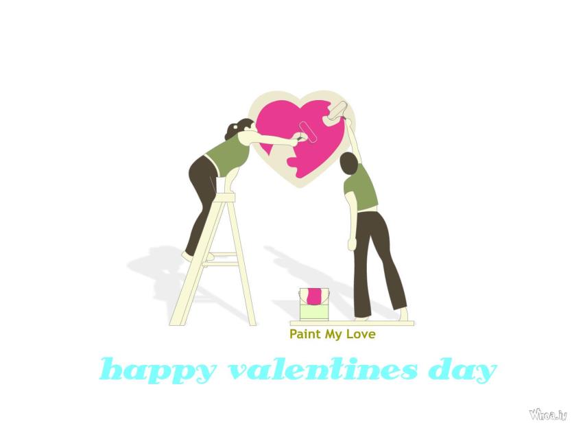 Happy Valentine Day Couple Paints His Love On Wall HD Wallpapers For Greetings
