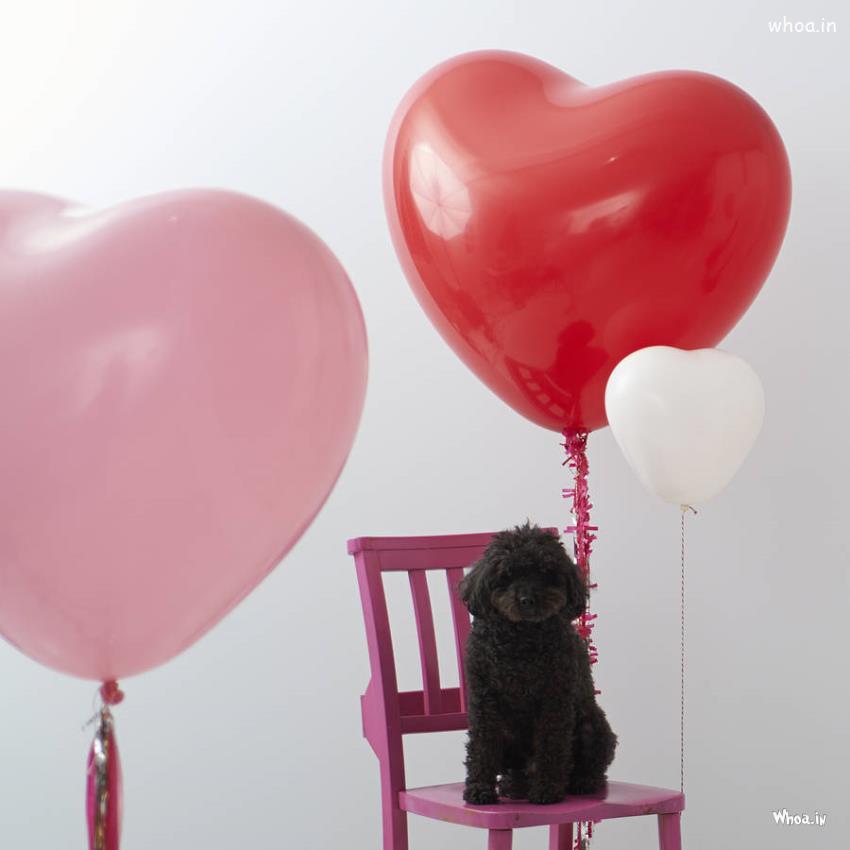 Heart Baloons And Puppy Hd Wallpaper