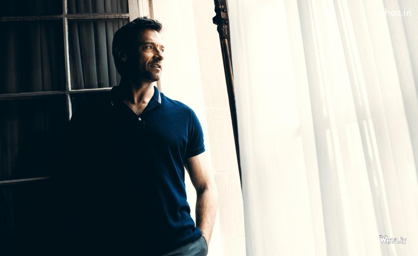 Hugh Jackman in Blue Polo Shirt HD Widescreen Wallpaper, Hollywood Actor Images, Hugh Jackman Wallpaper