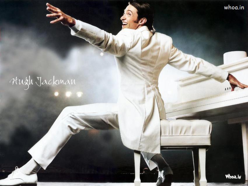 Hugh Jackman White Suit and Play White Piano HD Widescreen Wallpaper, Hollywood Actor Images, Hugh Jackman Wallpaper
