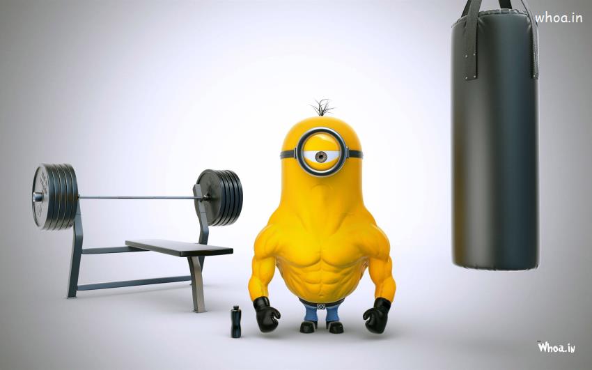 Hulk Minions Body Exercise HD Desktop Wallpaper,Despicable Me Characters Wallpaper,Minions Wallpaper,Cartoon Wallpaper,Funny Cartoon Image