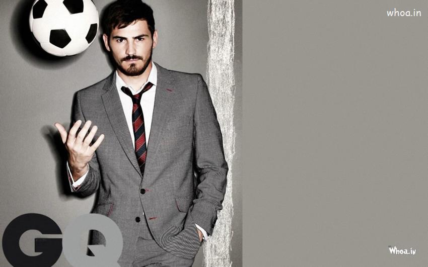 Iker Casillas Gray Suit with Football HD Wallpaper,Iker Casillas HD Wallpaper and Images,Spain Football Captain and Goalkeeper Wallpaper and Images