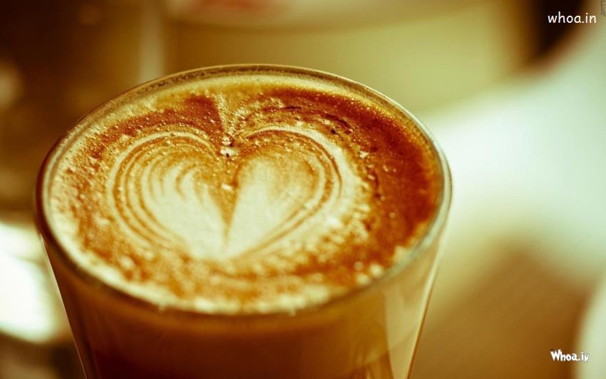 The glass with full of coffee with heart shaped cream to express the love to your beloved