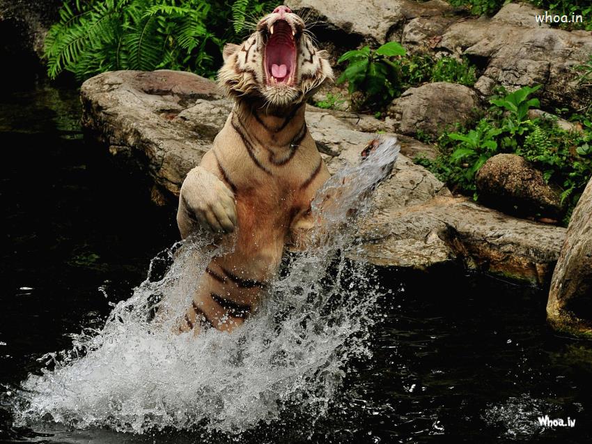 Roaring Tiger in Water Wallpaper HD,Tiger Roar Images,Close Up of Tiger Roaring in Water Wallpaper