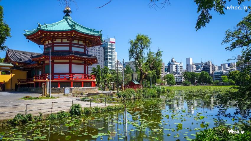 Japan Pond Tokyo Temple Blue Sky Background HD Travel Wallpaper - Temple Wallpapers- Wallpapers tagged with JAPAN