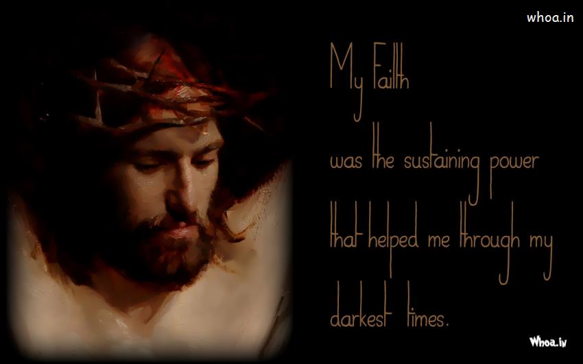 Jesus Christ Face Closeup with Quotes like my failth was the sustaining power that helped me through HD Wallpaper,God Wallpaper,Jesus Christ Wallpaper