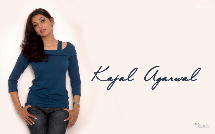 Kajal Agarwal in Blue Top and Black Jeans,Bollywood And Tollywood Actress Kajal Agarwal Hot, Beautiful, Sexy Photo of Kajal Free Download