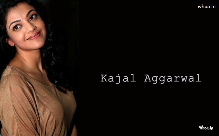 Kajal Aggarwal With Gry Top And Dark Background Wallpaper
