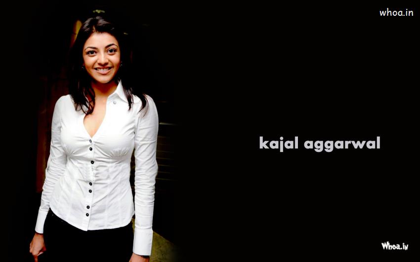 Kajal Aggarwal With White Top And Dark Background Wallpaper