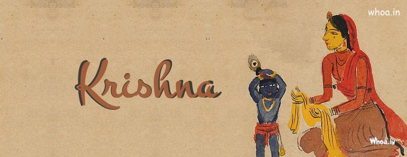 kanha and yashoda hand painting fb cover, Lord Krishna, Bal Krishna, Murlidhar HD FB Cover For Free Downlod