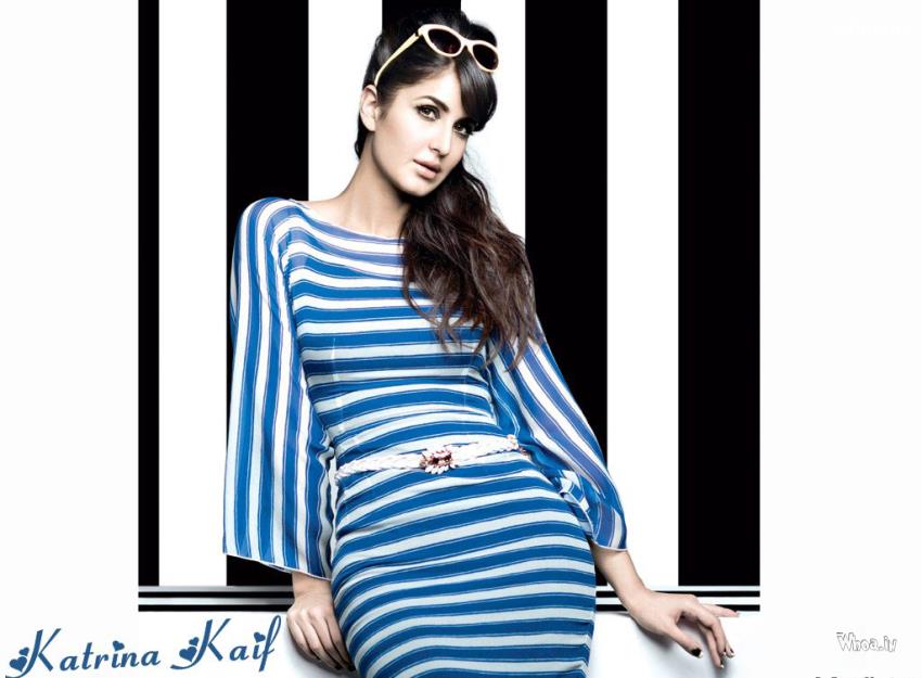 Katrina Kaif Blue & White Dress with Black & White Background,Bollywood Actress Wallpaper,Katrina Kaif Wallpaper,Bollywood Celebrity Images
