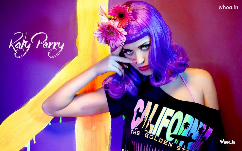 Katy Perry Hollywood Actress Hot and Sexy Images,Hot Images of Katy Perry,Wallpapers of Sexy Katy Perry,Katy Perry in Black Top and Purple Hairs