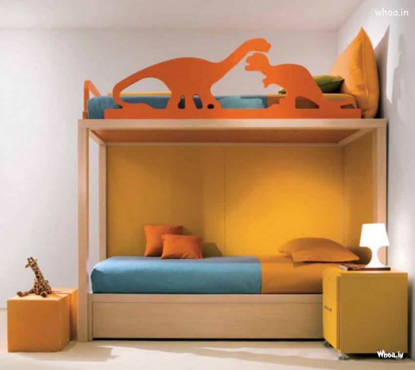 Kids Room with Dinosaur accent in trendy bedroom plans for two children Wallpaper, Kids Room Interior Design Wallpaper, Child Room Design