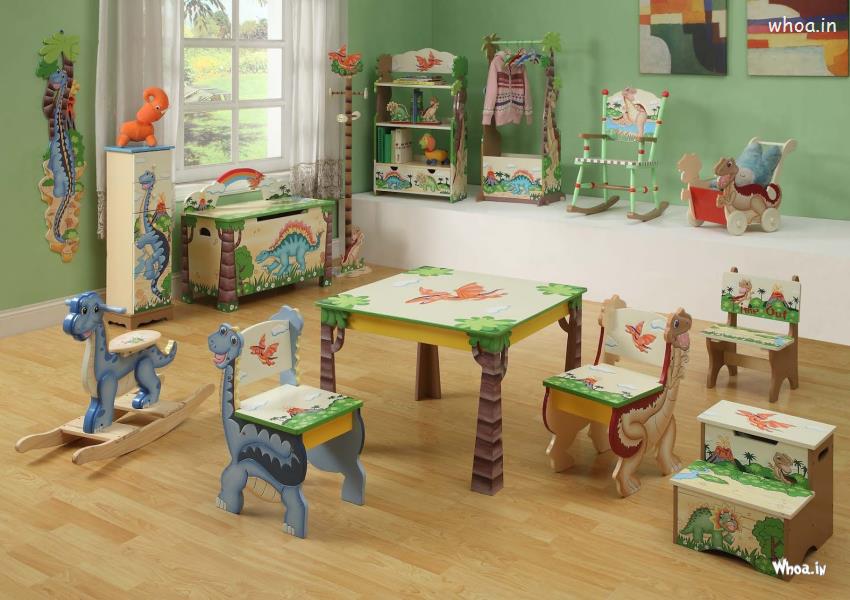 Kids Room with Dinosaur Furniture and small Dinosaur shape of chair & table Wallpaper, Kids Room Interior Design Wallpaper, Child Room Design