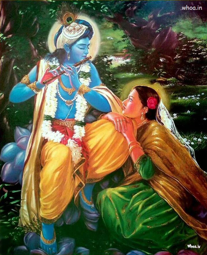 krishna playing flute and radha listening, Krishna, Radha, Radha Krishna HD Wallpapers, Paintings, And Photoshootes