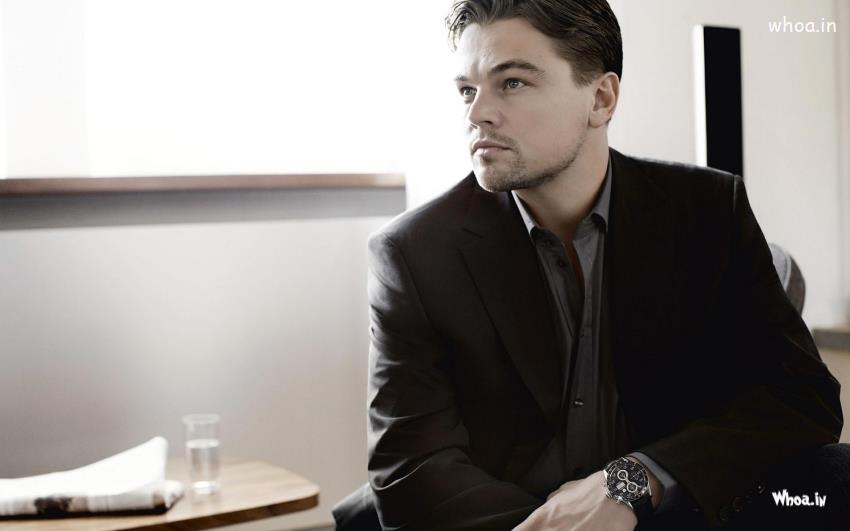 Leonardo DiCaprio in Black Suit and Face Closeup with White Background HD Wallpaper, Hollywood Actor Images